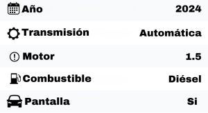 Más detalles: Puertas laterales, pantalla, comandos al volante, climatizador, selector de cambios, car play y Android auto, velocidad crucero.
